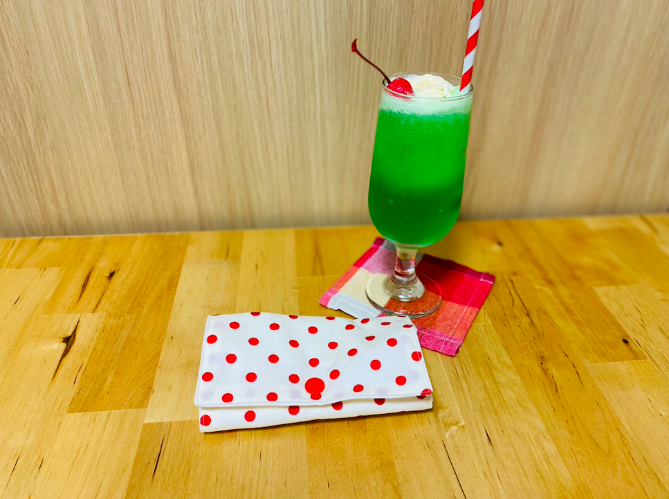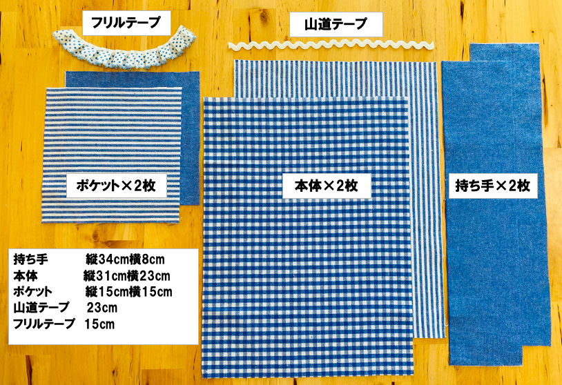 50cm×55cmの生地は小物作りをするには使い勝手が良くさらに縫いやすい生地だったので色違のギンガムチェックの黒も購入して同じデザインで作りました。